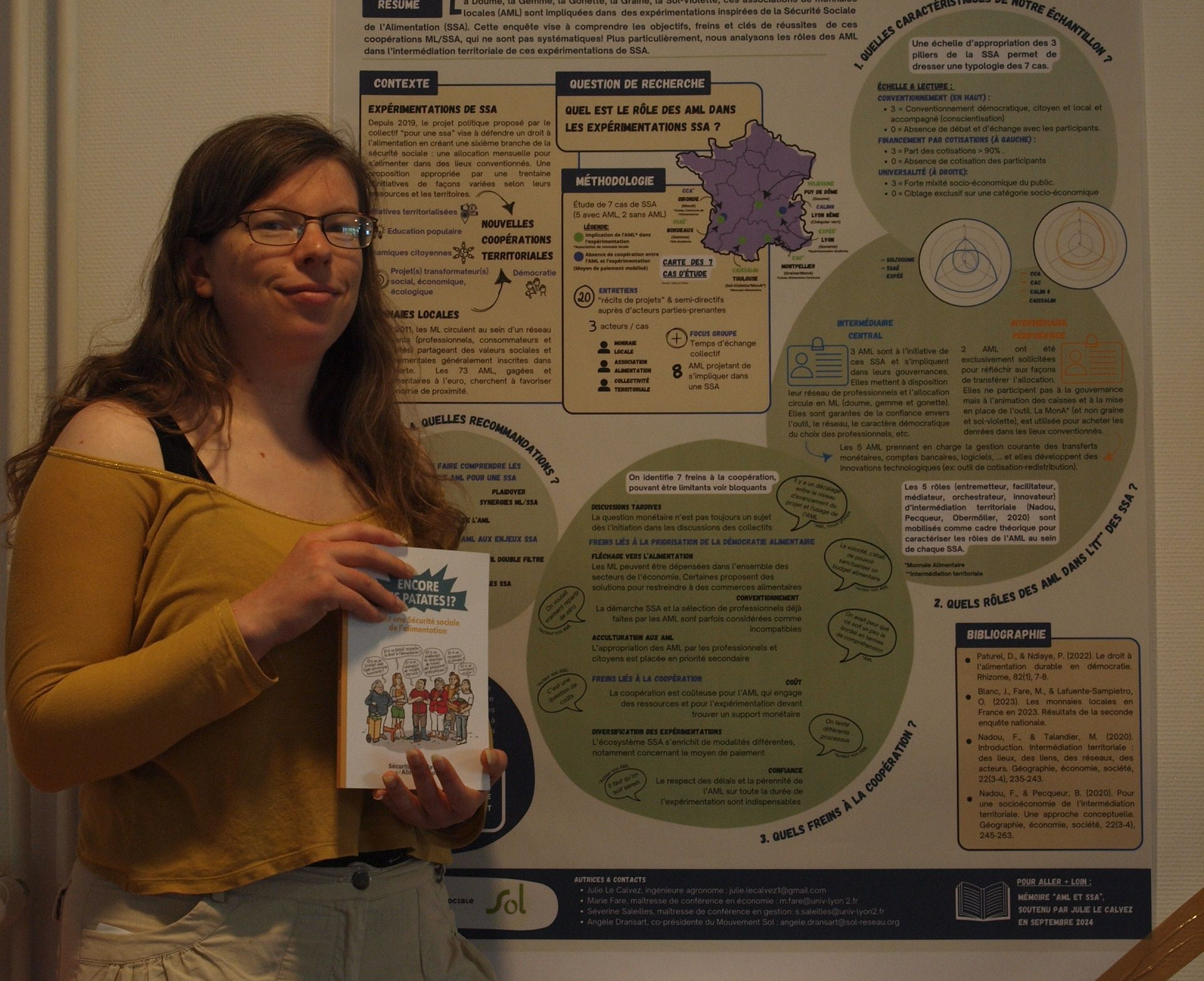 Beaucoup d'entre vous me connaissent déjà : je m'appelle Angèle Dransart, j'ai été salariée de la doume de 2018 à 2024 et co-présidente de Sol de 2023 à 2025. J'ai rejoint l'équipe salariée de Sol en juin pour poursuivre les chantiers que j'avais commencés à la co-présidence : liens entre monnaies locales et alimentation, recherche de financements, et d'autres projets dont vous entendrez bientôt parler !